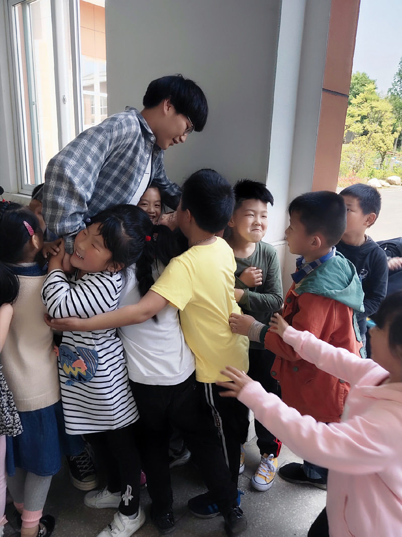 在下课的时候,学生一直在找我们玩,在上课时,他们认真懂事,坐的端正。和他们的关系亦师亦友。