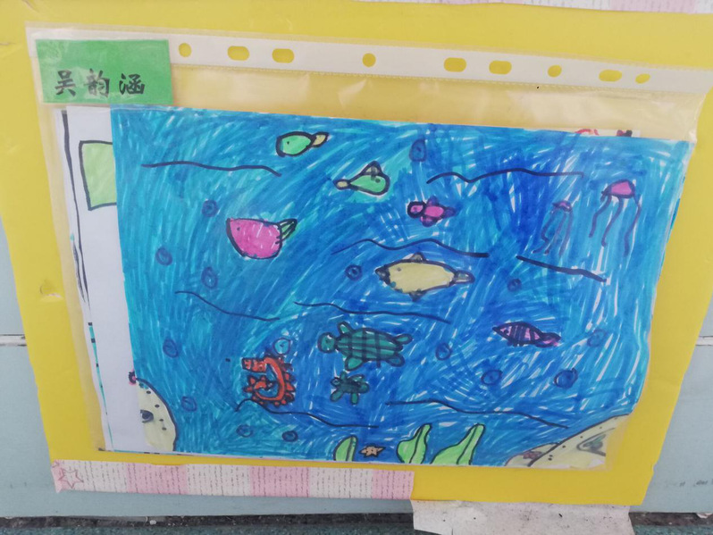 今天我在班级开展了一美术活动,就之前讨论过的美术活动该不该给范画我在活动中进行实践。绘画的活动主题是奇妙的海底世界,孩子对这个主题很感兴趣,大多数孩子也去过海洋馆或者海底,所以他们的经验非常丰富。我出示了很多图片,并且引导幼儿观察海底生物的外形特征、颜色等,并且请了很多幼儿上台表演它们的动作,孩子们很感兴趣,在看完最后一个视频后孩子们全都迫不及待的想要去画。我看见了涵涵画的内容,我只是问她画了什么,她像打开了话匣子一般和我说了很多,我站在她的想象中去询问她后面发生了什么,她会跟着自己画的东西去想象,去说她见过的或者发生的事情。我发现涵涵平时不怎么爱说话,但是今天和我说了很多话,而且神采飞扬,很感兴趣,看到涵涵和我在讨论画,周围的小孩子围过来说自己家里也养了小乌龟,还有小金鱼,还去过海洋馆等等,这让我在想什么时候再给小孩子们开展一个谈话讨论活动,孩子们一定有说不完的话。